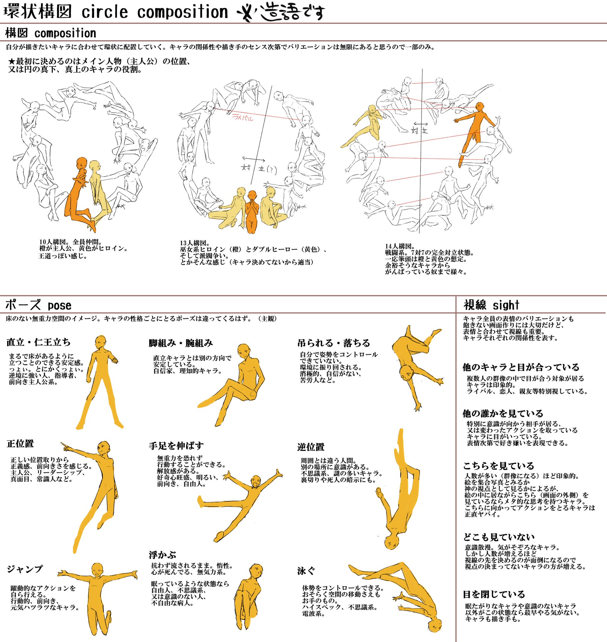 暮宙シュン V Tvittere 環状構図練習 番外 ポーズや構図はどうやってひねりだしてるのか という質問に対する私なりの回答です 構図で何を暗示し何を感じとるのかは人次第なのであくまで私 Drawings Of Friends Drawing Reference Poses Drawing Reference