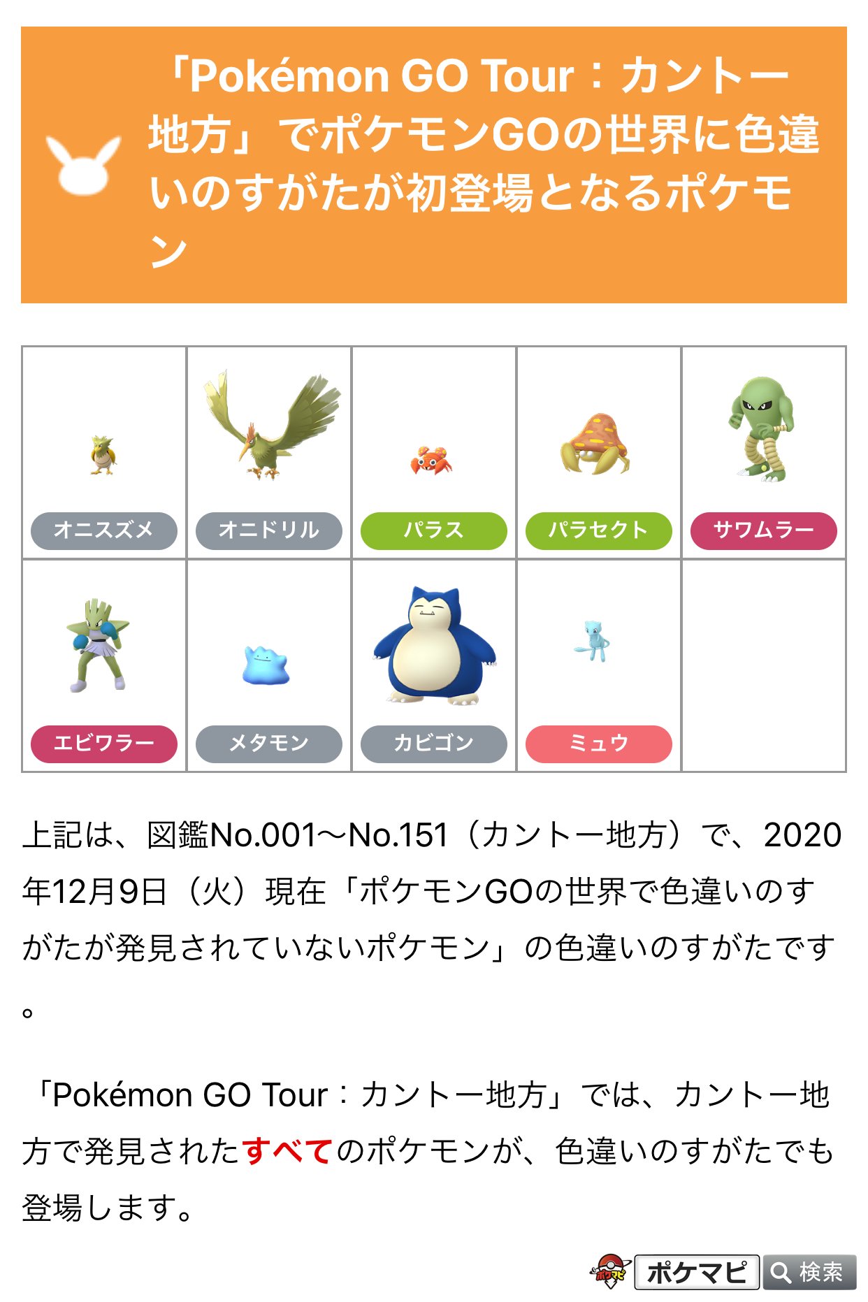 ポケモンgo攻略情報 ポケマピ 画像は 図鑑no 001 No 151 カントー地方 で 12 9現在 ポケモンgo の世界で色違いのすがたが発見されていないポケモン です Pokemon Go Tour カントー地方 では カントー地方で発見されたすべてのポケモンが